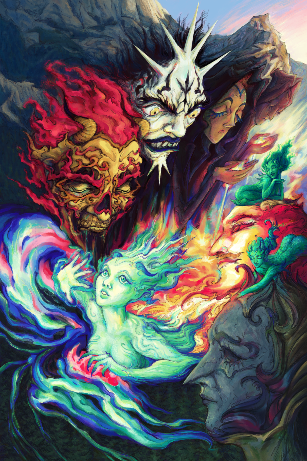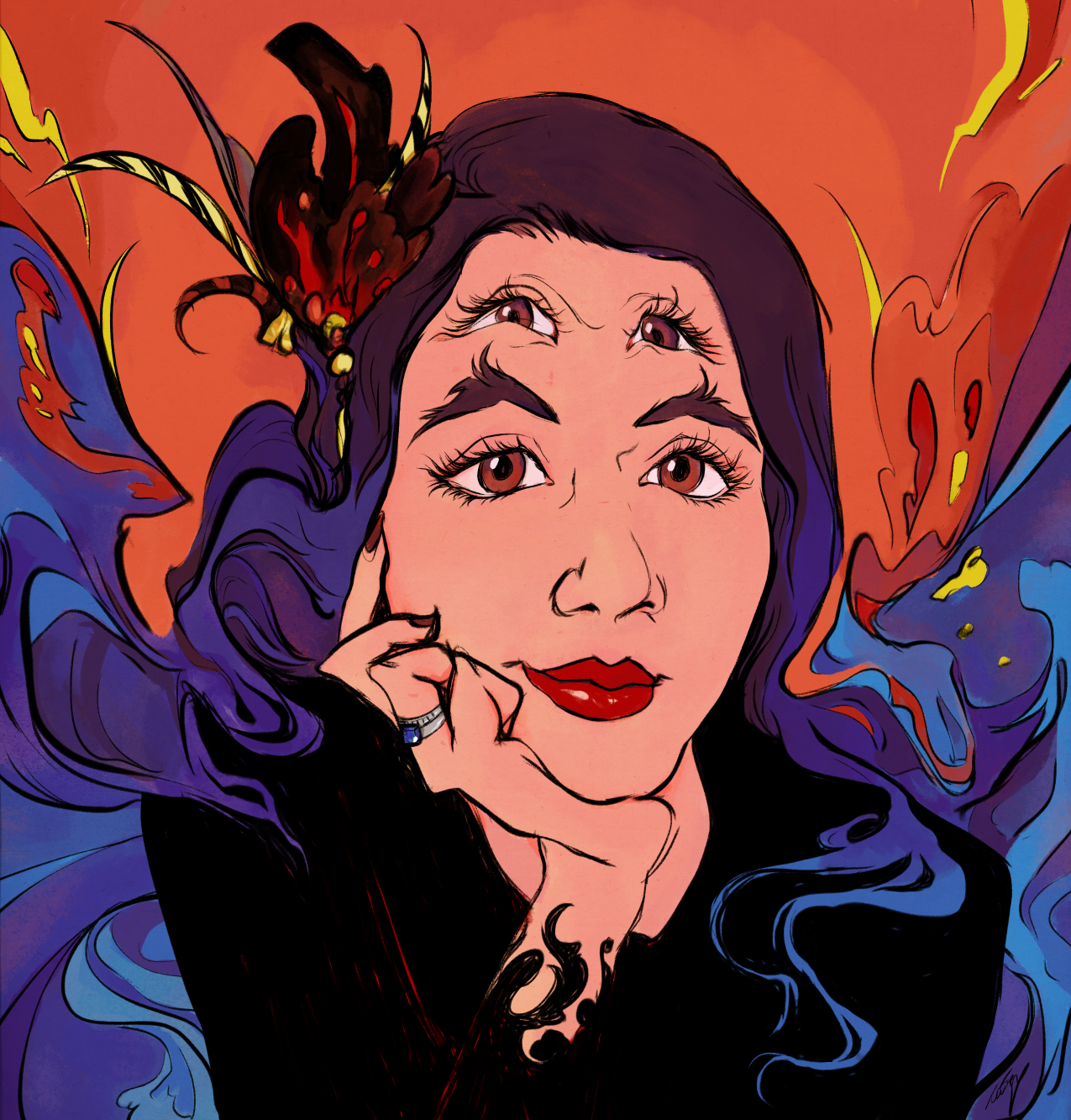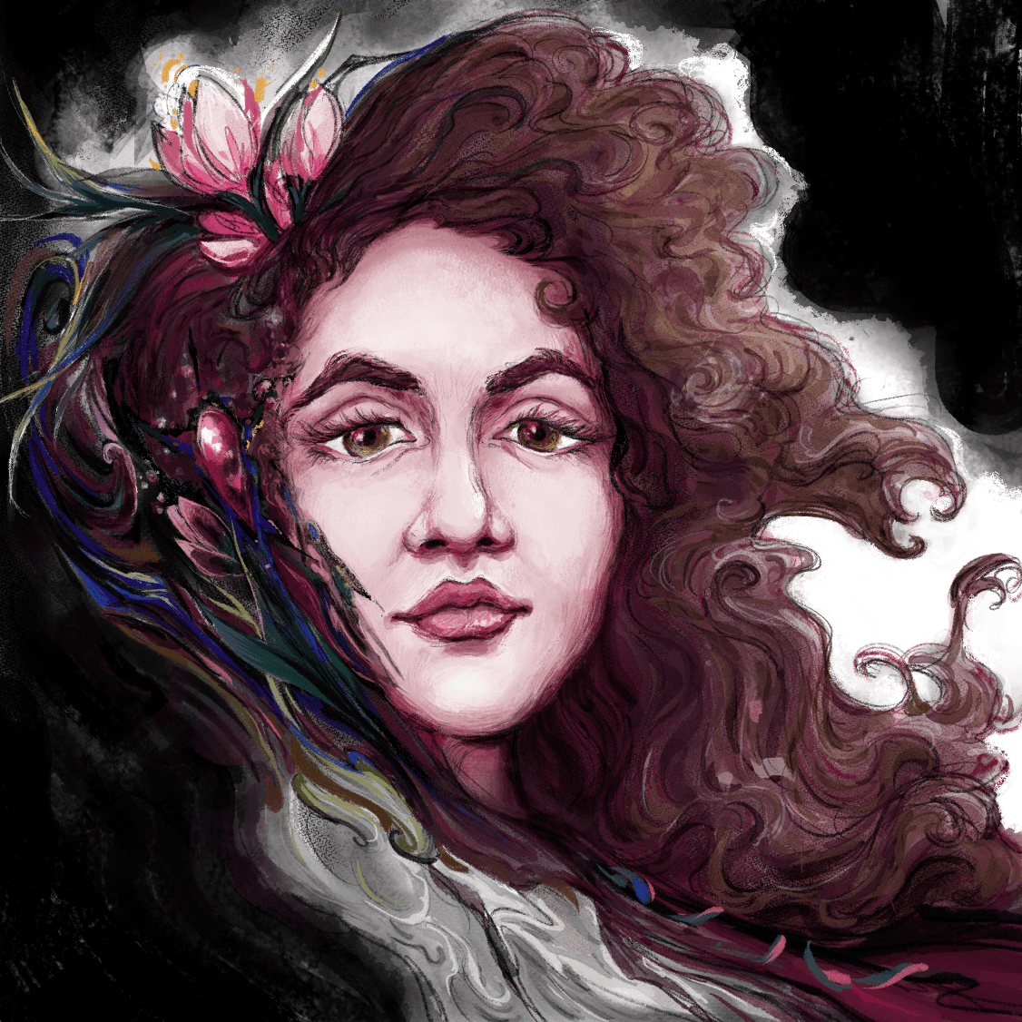 “Warrior of the Blood Snake” – Watercolor and ink“She can Twist your Mind” – Experimental work done with Gouache and India Ink “Embrace” – Digital Painting“Journey Through the Mountains” – Digital PaintingMixed Media experiment on paper“The Chalice Spirit” – Digital Painting“Self Portrait” – Digital Art“In a State of Flux” – Digital Painting“Spots” – Digital Painting“Self Portrait” – Digital Art